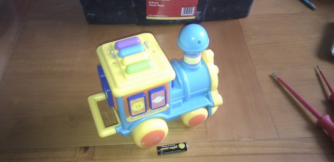 Our daughter has a toy train (from ToysRUs) which she really enjoys playing with but the other day she threw it on the floor from her high chair and most of the noises it made suddenly stopped working (hmmm, was that really a bad thing?). Being the sort of person that can’t bare to see…